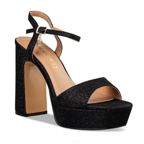 Envie πέδιλα με φιάπα και χοντρό τακούνι σε μαύρο χρώμα