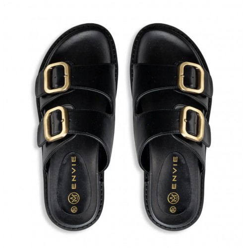 Σανδάλια Envie φλατ σε μαύρο χρώμα