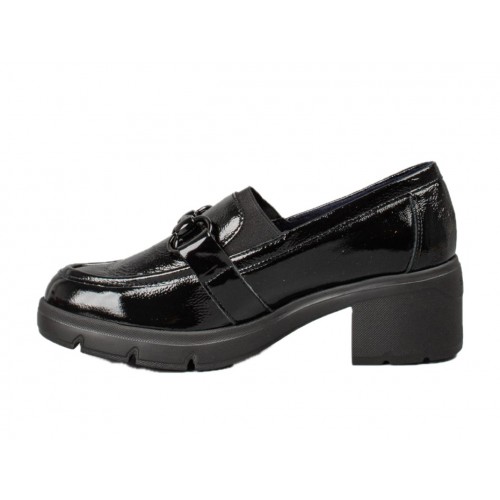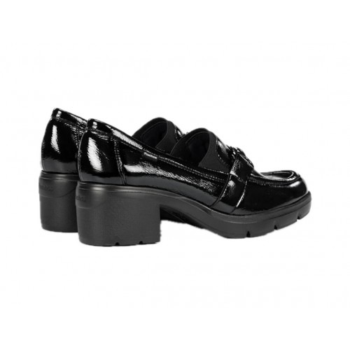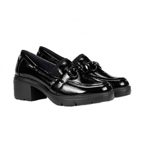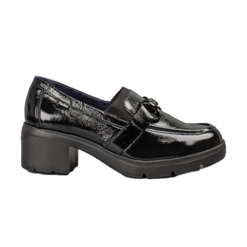 Γυναικείο loafer Fluchos με τακούνι σε μαύρο λουστρίνι F2111