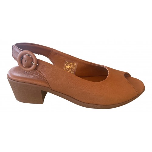 • Γυναικείο δερμάτινο πέδιλο σε ταμπά χρώμα safe step