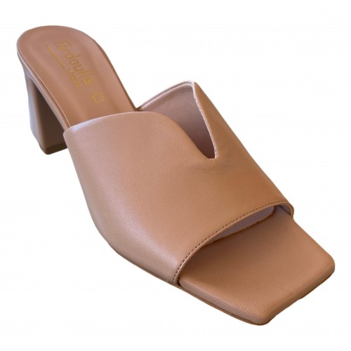 Γυναικεία mules με τακούνι σε μπεζ δέρμα Fardoulis 618-12Χ