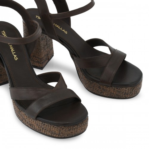 Γυναικεία πέδιλα Tsakiris Mallas δερμάτινα σε καφέ χρώμα 643