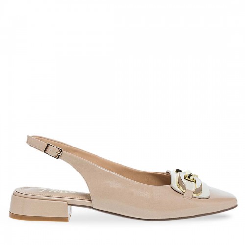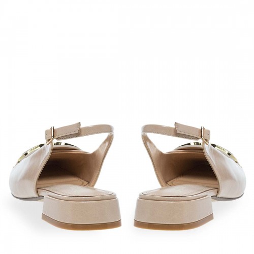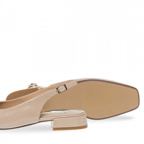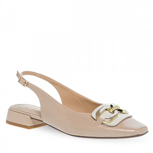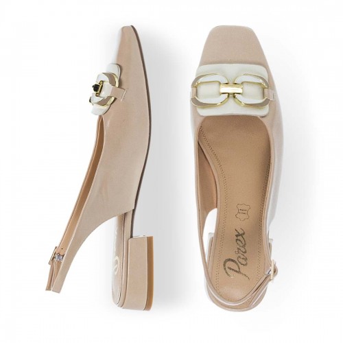 Γυναικείες γόβες Parex. Γόβες slingback με χαμηλό block τακούνι για σταθερότητα και λουράκι φτέρνας με αγκράφα για ασφαλή εφαρμογή. Το διακοσμητικό μεταλλικό στοιχείο στο μπροστινό μέρος προσθέτει κομψή λεπτομέρεια στον minimal σχεδιασμό.