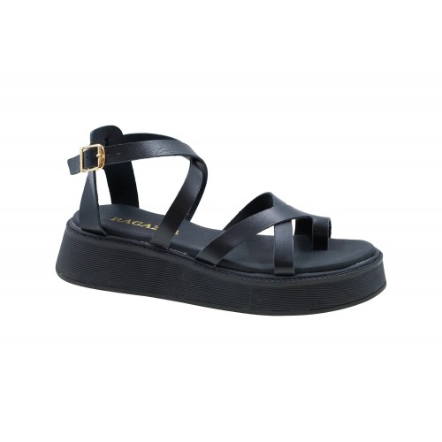 • Γυναικείο flatform Ragazza δερμάτινο μαύρο 01237
