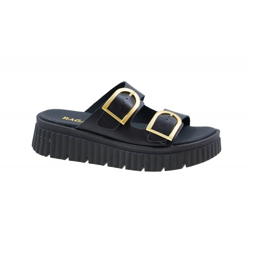 • Γυναικείο flatform Ragazza δερμάτινο μαύρο 01250