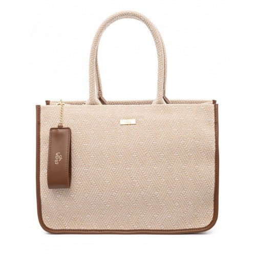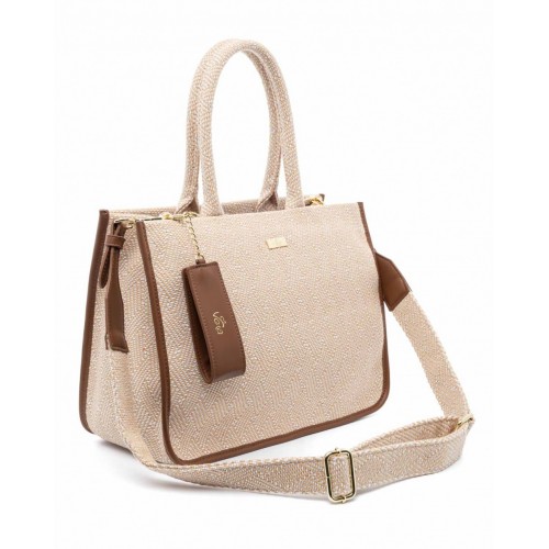Τσάντα χειρός VETA καμηλό ψάθα σε συνδυασμό με λευκό και ταμπά λεπτομέρεια 6067-24
