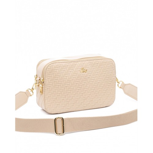Τσάντα χιαστί VETA με καμηλό και μπεζ μοτίβο 6122-34