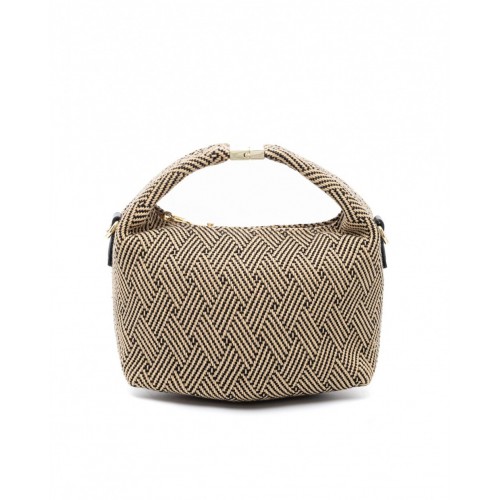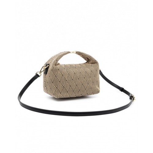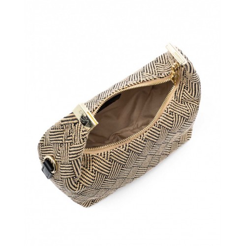 Τσάντα χιαστί VETA μπεζ ψάθα με μαύρες λεπτομέρειες και ιδιαίτερο μεταλλικό κούμπωμα στο χερούλι 6168-14