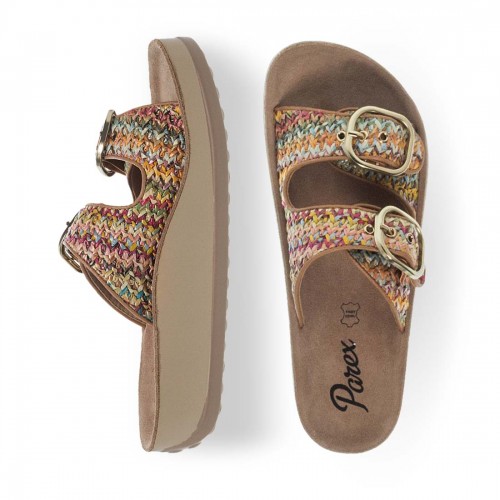 Μοντέρνα γυναικεία σανδάλια θα που θα ανανεώσουν τα καλοκαιρινά σας look. Διπλή φάσα με αγκράφα ώστε να εφαρμόζει τέλεια σε κάθε τύπο ποδιού. Εξαιρετικά μαλακός πάτος που θα ανακουφίσει τα πέλματα σας. Ανθεκτικά και ποιοτικά σανδάλια από τη Parex.