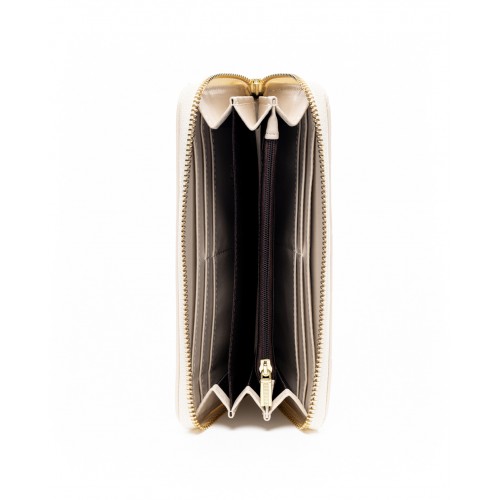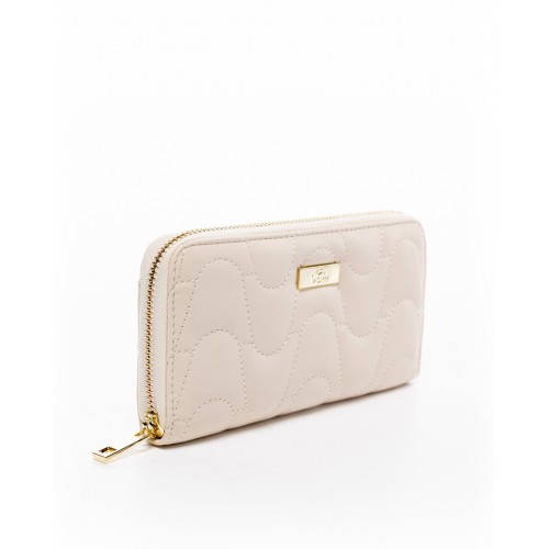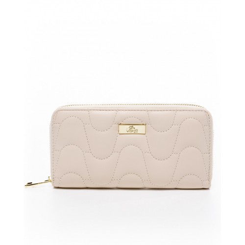 Πορτοφόλι μπεζ καπιτονέ με φερμουάρ και εξωτερική τσέπη στο πίσω μέρος VETA 1009-3