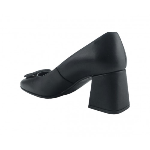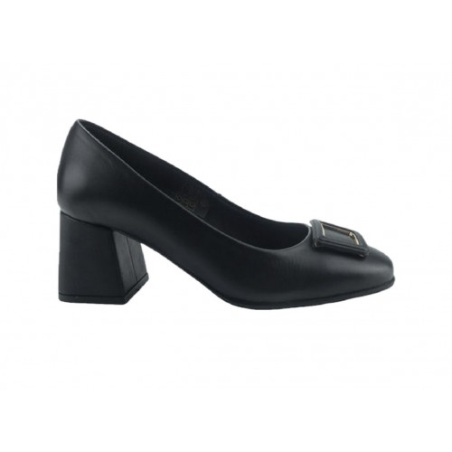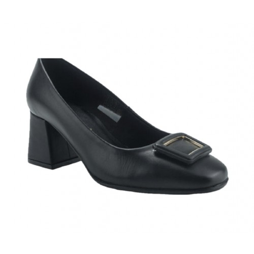 Ragazza δερμάτινες γυναικείες γόβες σε μαύρο χρώμα 045