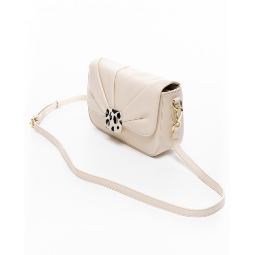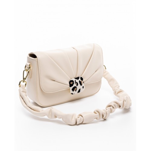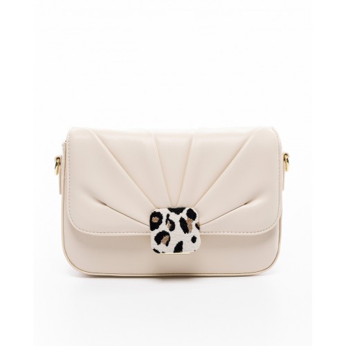Τσάντα ώμου μπεζ σε συνδυασμό με λεοπαρ υφασμάτινη λεπτομέρεια VETA